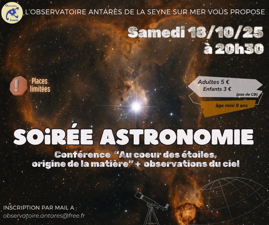 Places limitées : réservation par mail au : observatoire.antares@free.fr