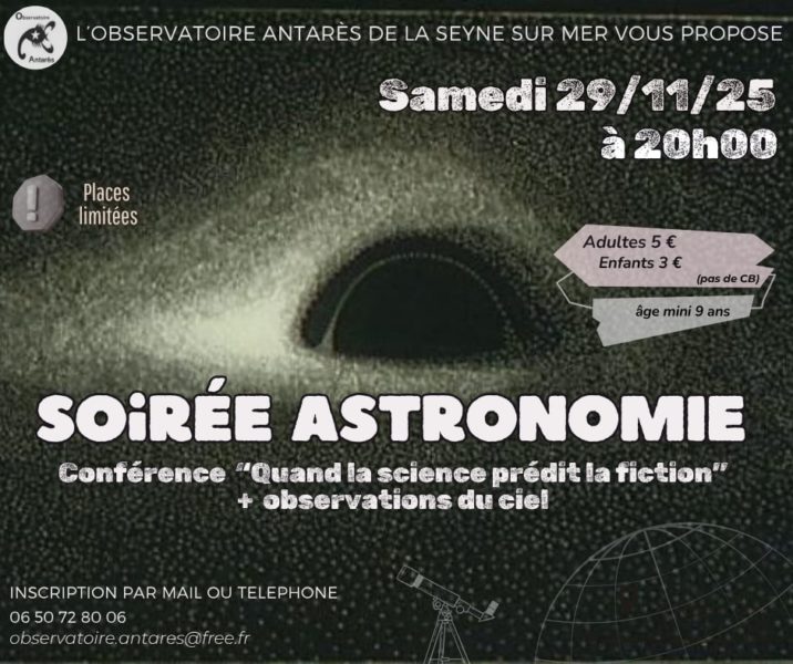 Places limitées : réservation par mail au : observatoire.antares@free.fr